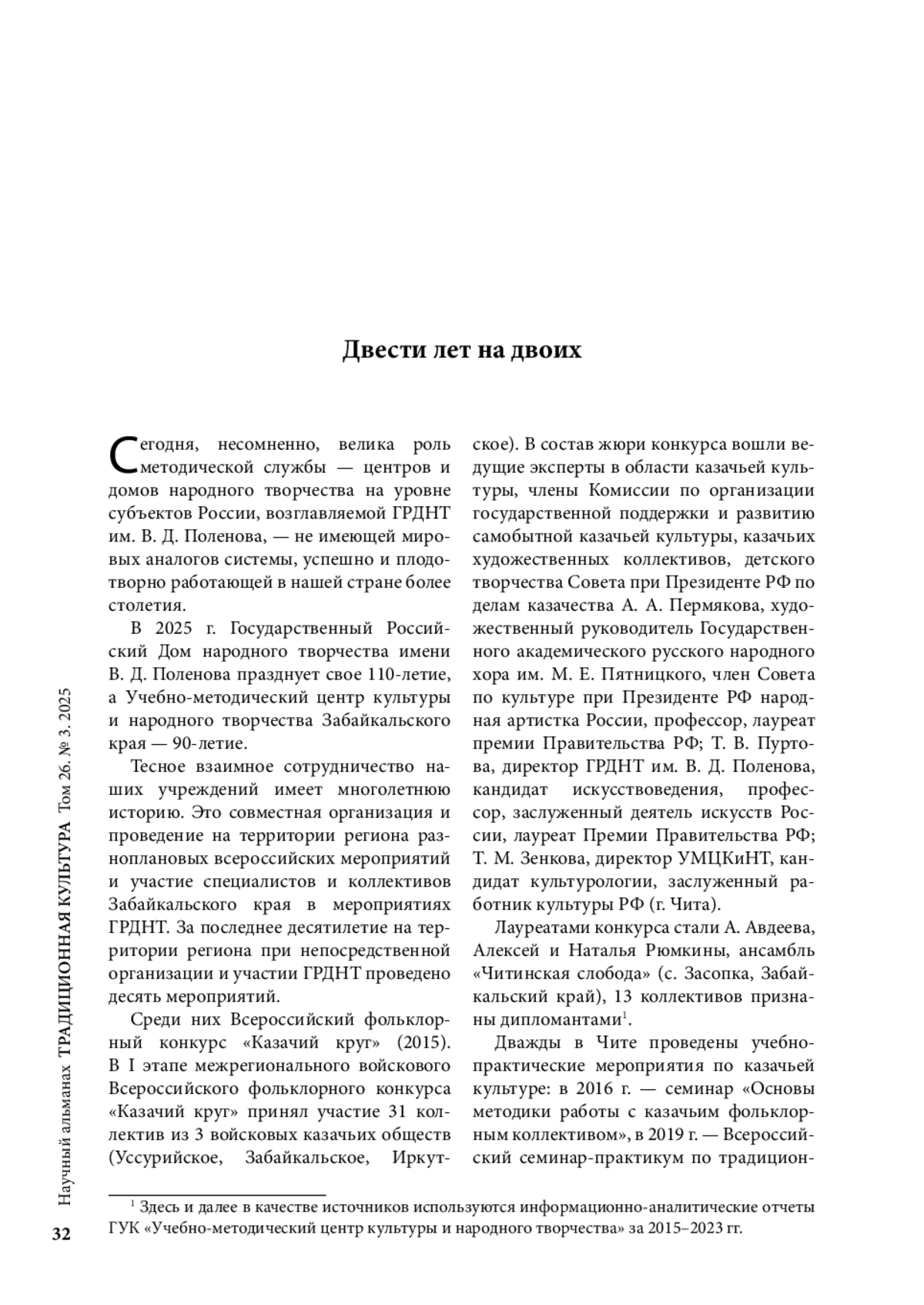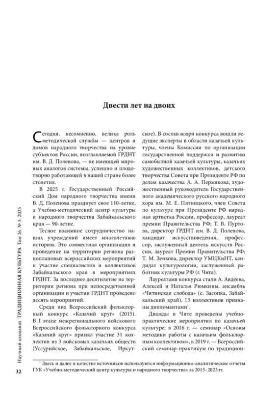 ЕРОХИНА Е. Г. ДВЕСТИ ЛЕТ НА ДВОИХ // ТРАДИЦИОННАЯ КУЛЬТУРА. 2025. № 3, ТОМ 26