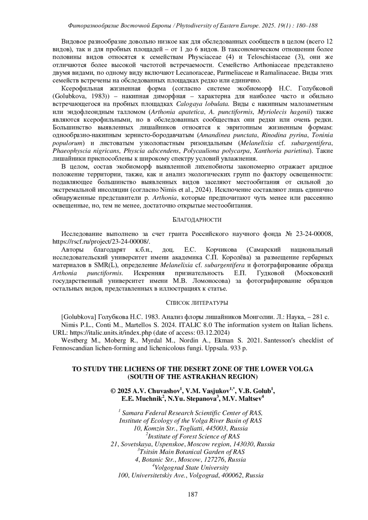 3. Westberg M., Moberg R., Myrdal M., Nordin A., Ekman S. 2021. Santesson′s checklist of Fennoscandian lichen-forming and lichenicolous fungi. Uppsala. 933 p.