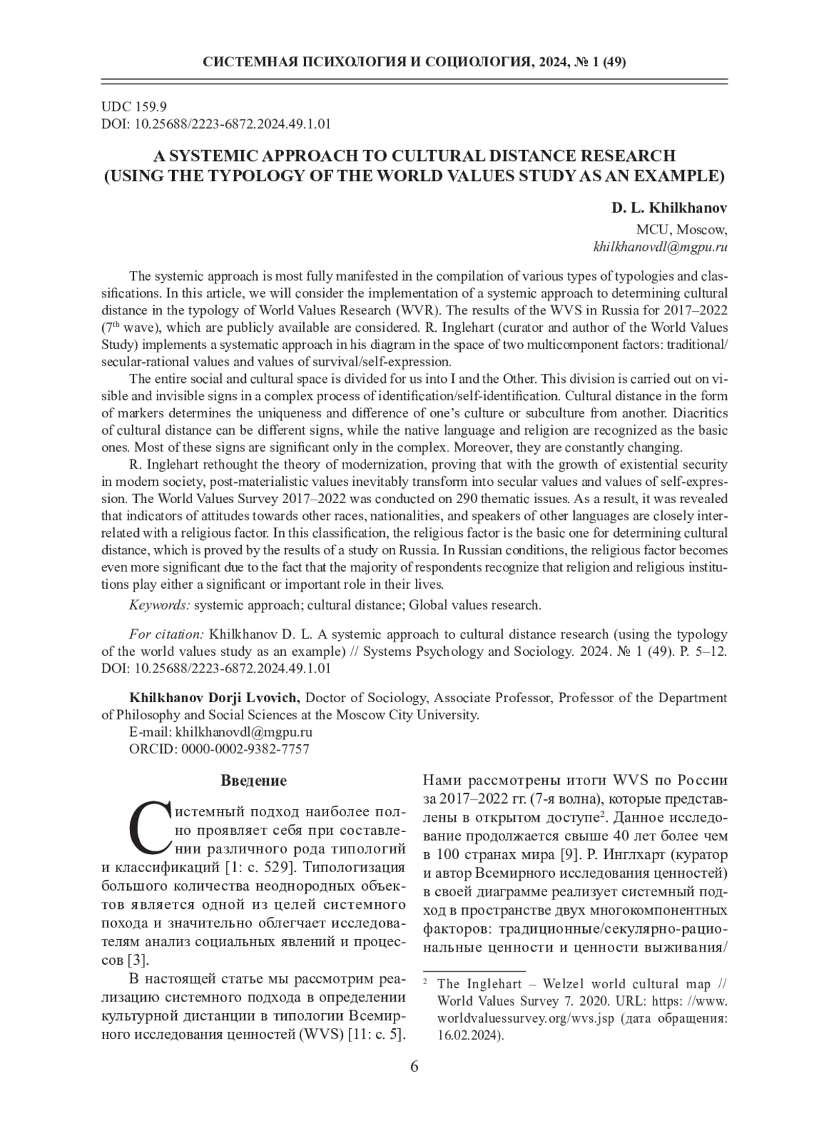 6. Хилханов Д. Л., Хилханова Э. В. Феномен культурной дистанции в современных условиях (языковые и религиозные факторы) // Вестник МГПУ. Философские науки. 2021. № 3 (39). С. 56-67. DOI: 10.25688/2078-9238.2021.39.3.06 EDN: IXASLI