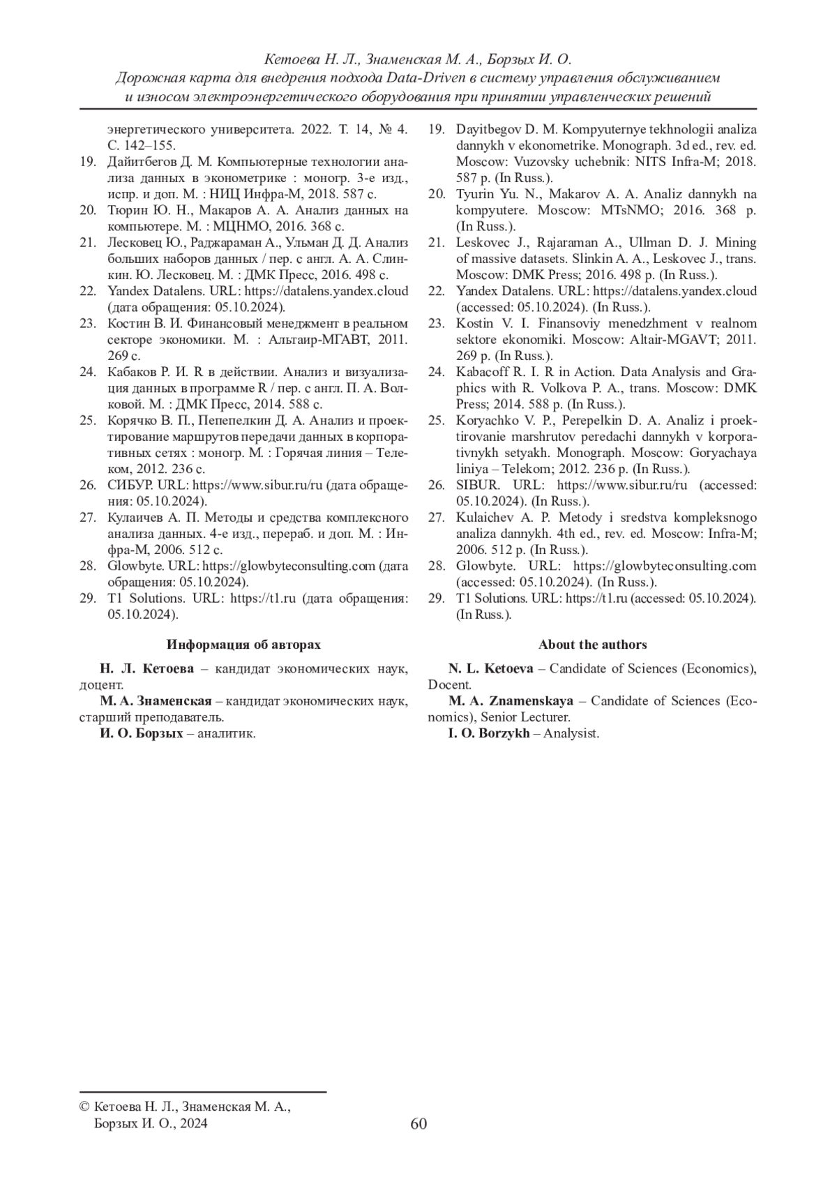 2. Наумов В. А., Матисон В. А., Федоров Ю. Г. Новые направления развития стандартизации в процессе цифровой трансформации электроэнергетики // Энергия единой сети. 2022. № 3-4. С. 20-29.