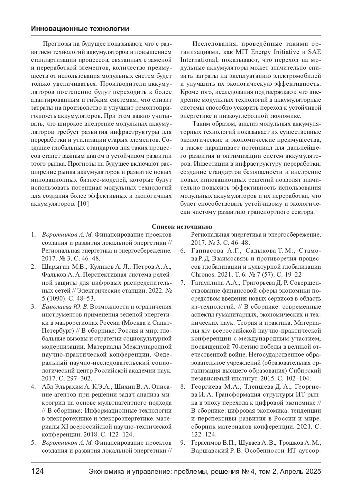 1. Воротников А. М. Финансирование проектов создания и развития локальной энергетики // Региональная энергетика и энергосбережение. 2017. № 3. С. 46-48. EDN: UWZEXA