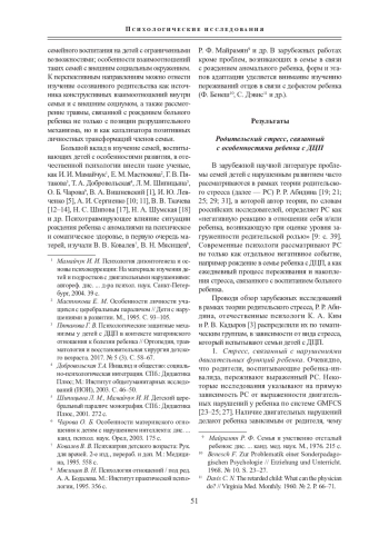 21. Butcher P. R., Wind T., Bouma A. Parenting stress in mothers and fathers of a child with a hemiparesis: Sources of stress, intervening factors and long-term expressions of stress // Child: Care, Health and Development. 2008. Vol. 34. № 4. P. 530-541. DOI: 10.1111/j.1365-2214.2008.00842.x
