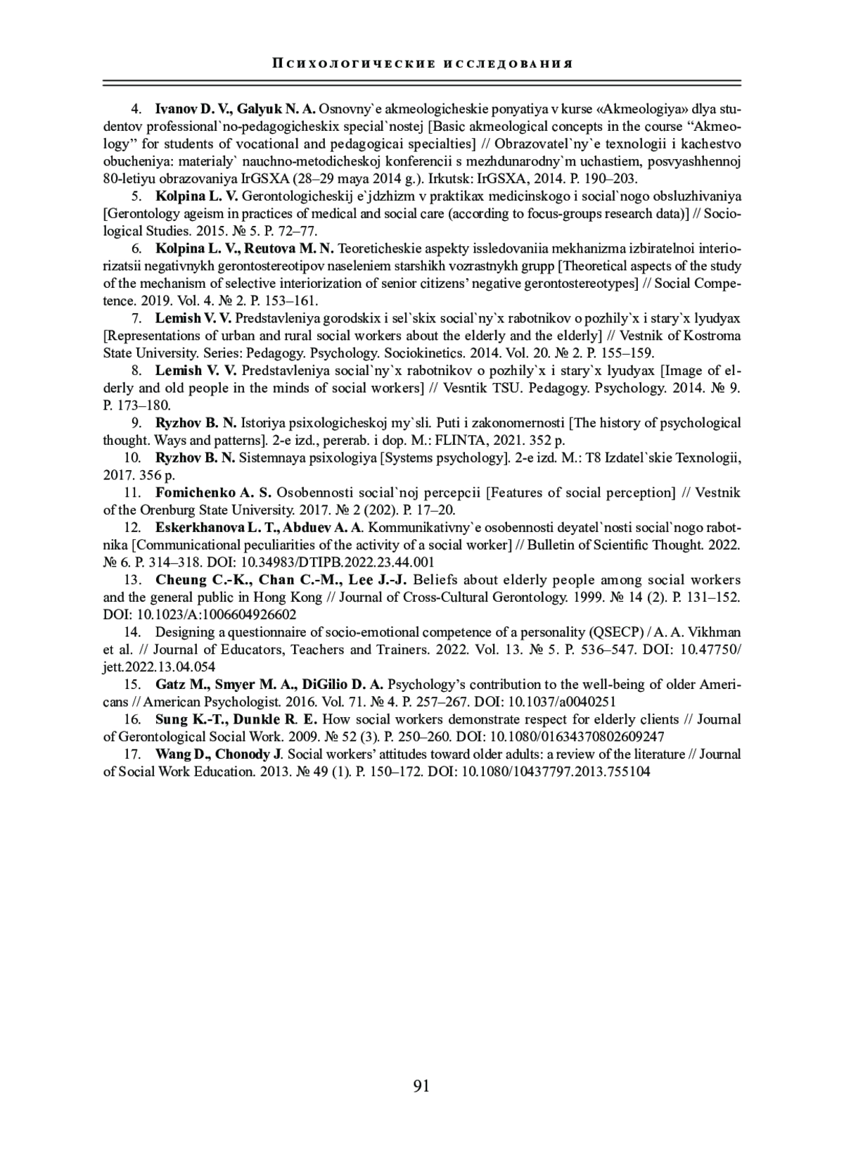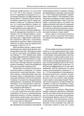 8. Лемиш В. В. Представления социальных работников о пожилых и старых людях // Вестник Тюменского государственного университета. Педагогика. Психология. 2014. № 9. С.173-180. EDN: TBVTNL