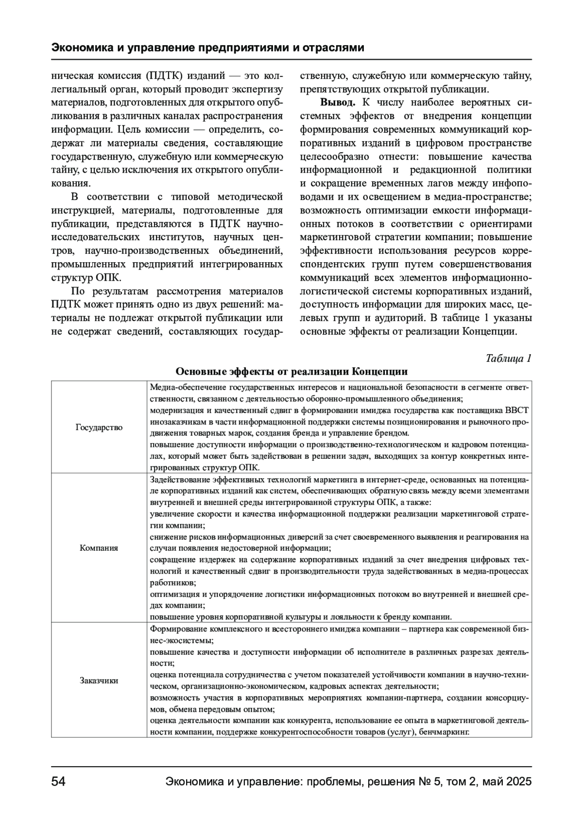 Статья: РАЗРАБОТКА КОНЦЕПЦИИ ФОРМИРОВАНИЯ КОРПОРАТИВНЫХ ИЗДАНИЙ КАК СИСТЕМЫ КОММУНИКАЦИЙ В РАМКАХ ИНТЕГРИРОВАННЫХ СТРУКТУР ОПК (2025)