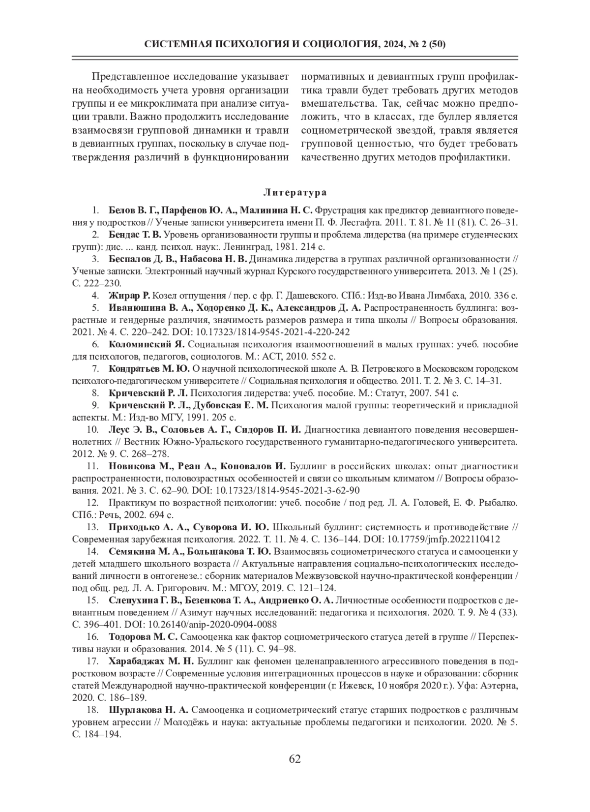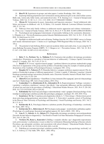 23. Psychological and pedagogical determinants of personality bullying in the sociometric dimension / L. Filipenko et al. // Revista Romaneasca pentru Educatie Multidimensionala. 2022. Vol. 14. № 1. P. 263-282. DOI: 10.18662/rrem/14.1/518 EDN: KAPBCP