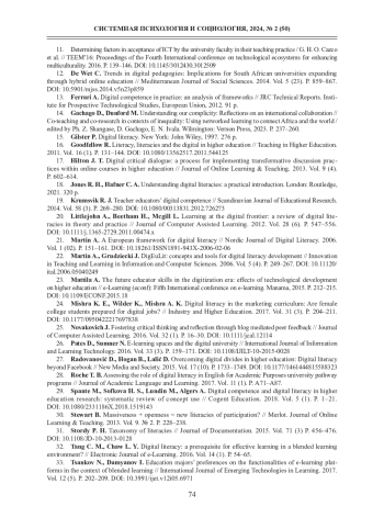 20. Littlejohn A., Beetham H., Mcgill L. Learning at the digital frontier: a review of digital literacies in theory and practice // Journal of Computer Assisted Learning. 2012. Vol. 28 (6). P. 547-556. DOI: 10.1111/j.1365-2729.2011.00474.x