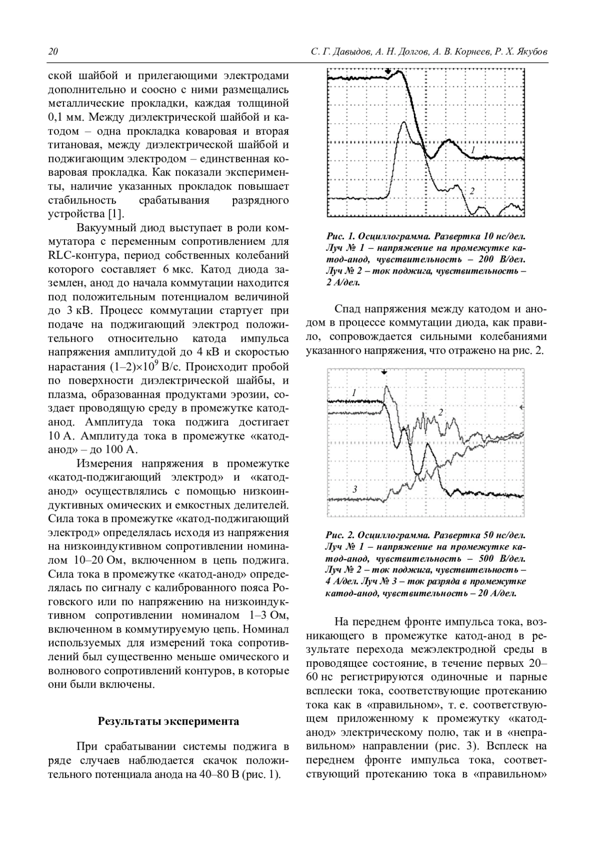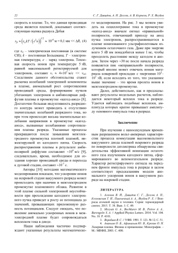 Давыдов С. Г., Долгов А. Н., Корнеев А. В., Якубов Р. Х. Коммутация высоковольтного вакуумного диода плазмой вспомогательного искрового разряда 19
