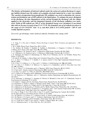 V. A. Titov, A. V. Khlyustova, I. K. Naumova, S. A. Sirotkin, and A. V. Agafonov Formation rate and energy yield of hydroxyl radicals in a water under the action of a gas-discharge plasma 35