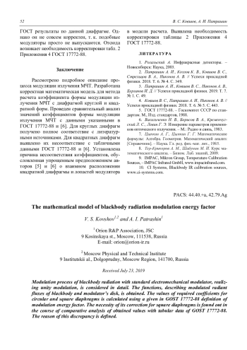 V. S. Kovshov and A. I. Patrashin The mathematical model of blackbody radiation modulation energy factor 47