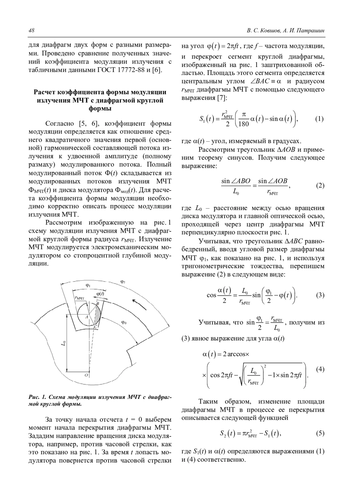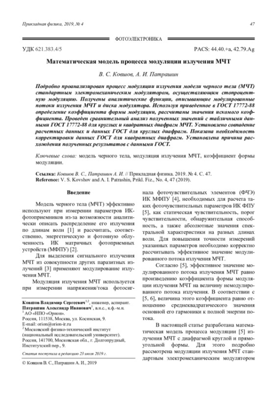 Ковшов В. С., Патрашин А. И. Математическая модель процесса модуляции излучения МЧТ 47