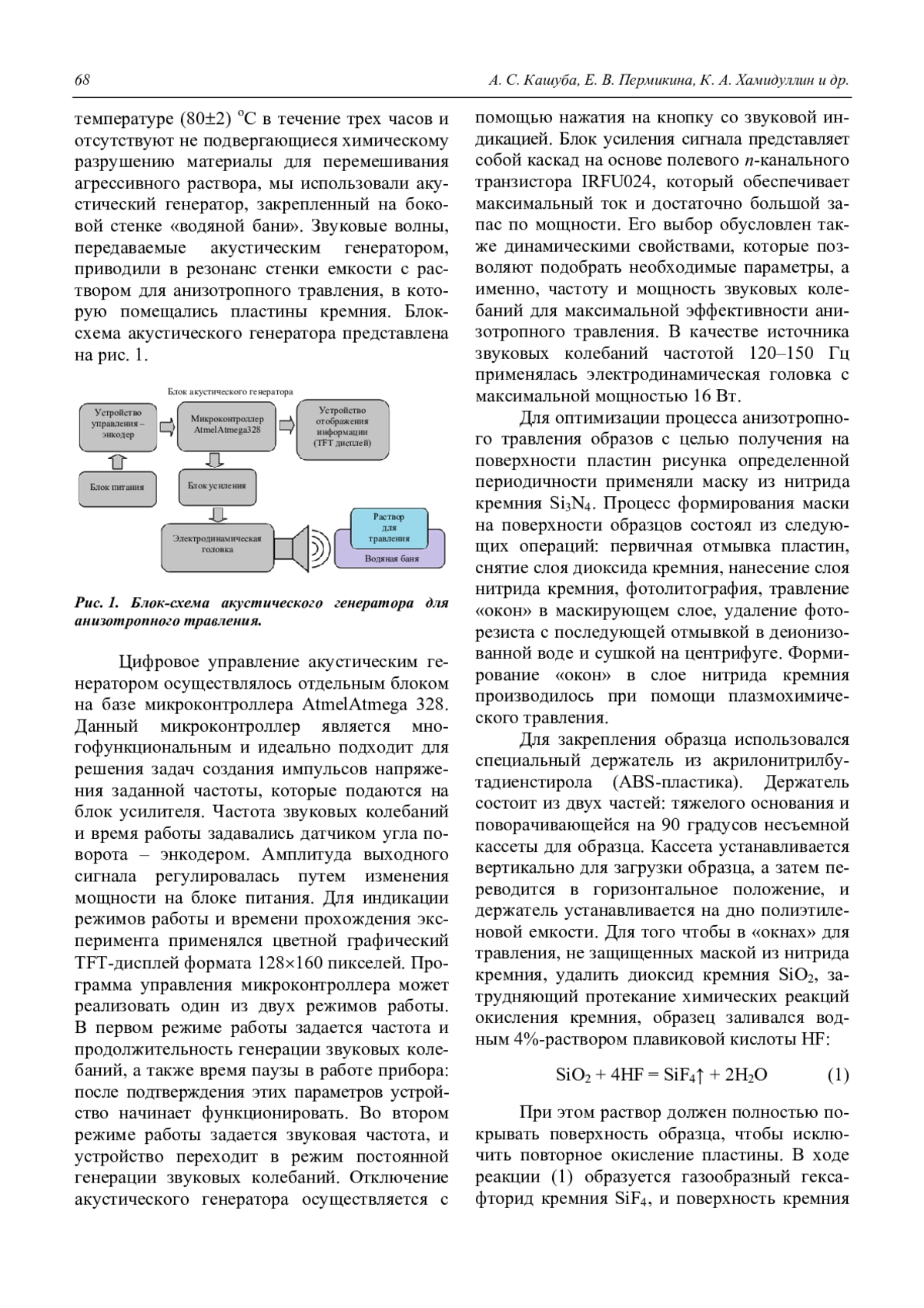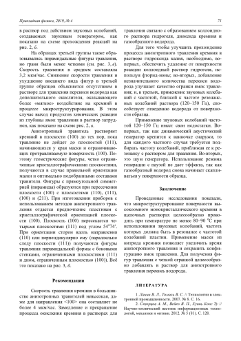 Кашуба А. С., Пермикина Е. В., Хамидуллин К. А., Драгунов Д. Э., Седяков А. И. Применение звуковых колебаний в процессе микроструктурирования поверхности вы-сокоомного монокристаллического кремния 66