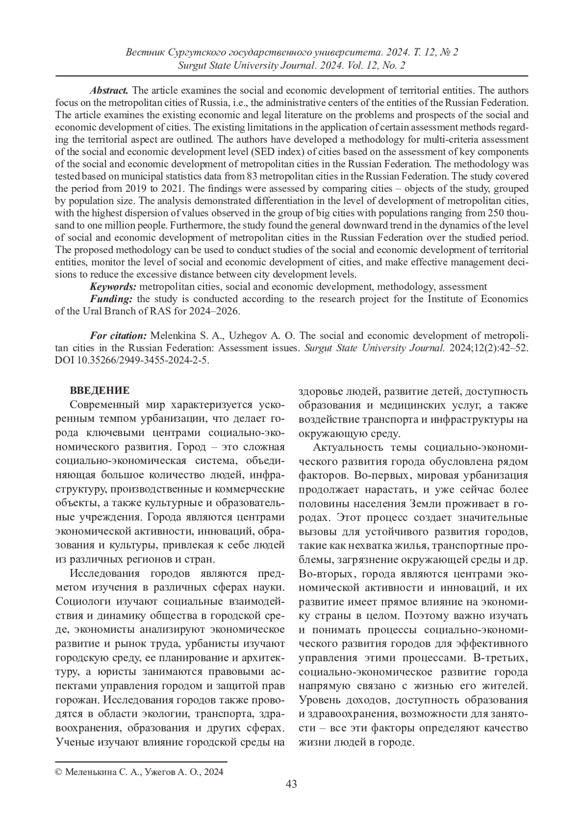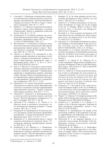 11. Жестянников С. Г. Особенности социально-экономического развития муниципальных образований, расположенных вблизи крупного города // Вестник Института экономики Российской академии наук. 2023. № 3. С. 99-126.