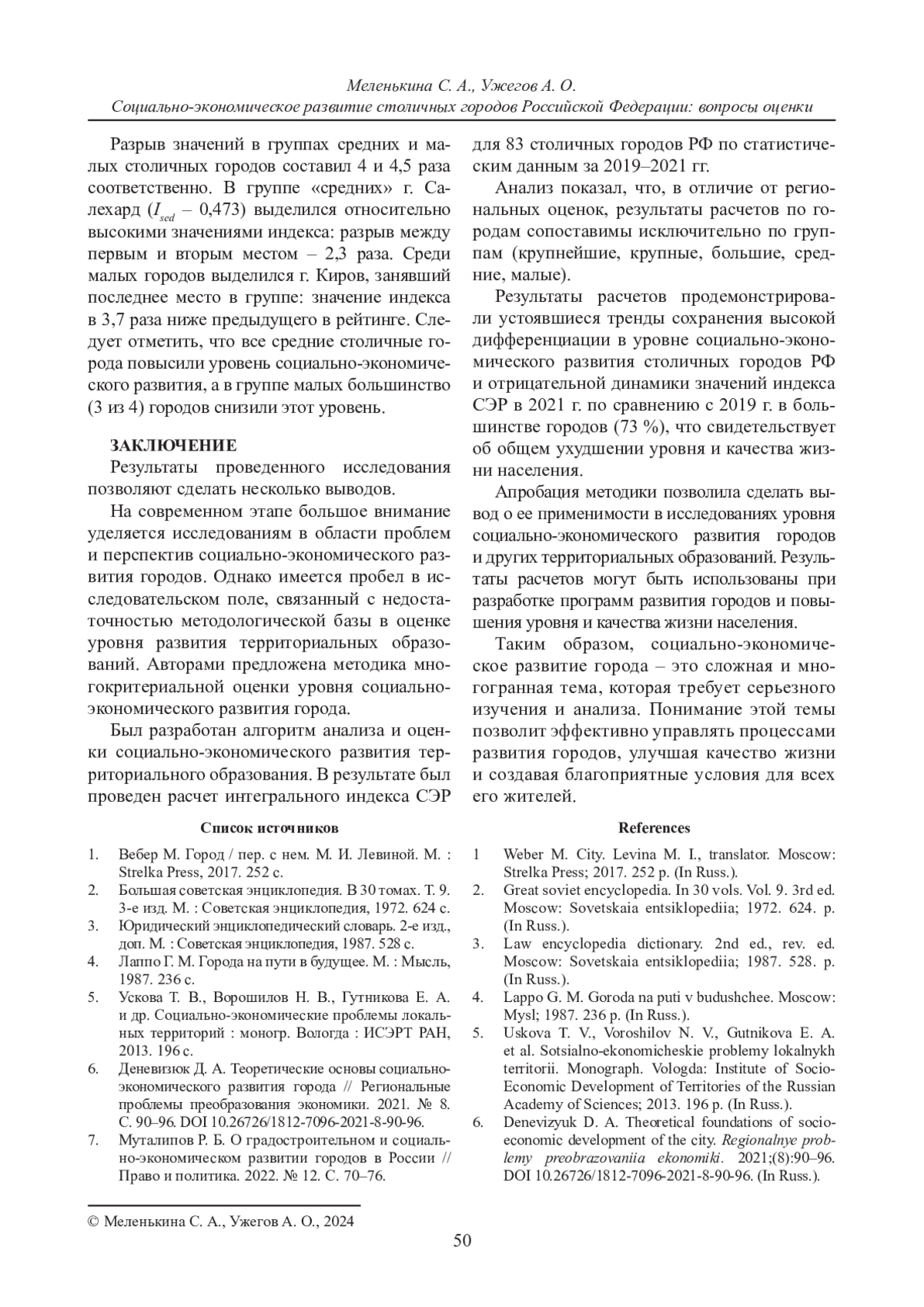 6. Деневизюк Д. А. Теоретические основы социально-экономического развития города // Региональные проблемы преобразования экономики. 2021. № 8. С. 90-96. https://doi.org/10.26726/1812-7096-2021-8-90-96.