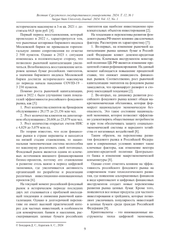 5. Александрова Ж. П., Акопьянц А. А., Подиева Е. А. и др. Фондовый рынок Российской Федерации: проблемы и перспективы развития // Первый экономический журнал. 2023. № 5. С. 127-133. https://doi.org/10.58551/20728115_2023_5_127.
