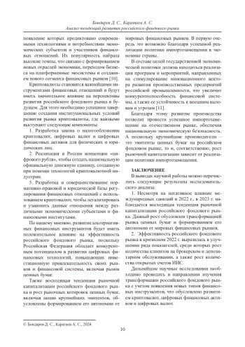 9. Рожков Е. В. Влияние развития цифровых технологий на фондовый Рынок России // Общество, экономика, управление. 2023. Т. 8, № 1. С. 32-39. https://doi.org/10.47475/2618-9852-2023-18105.
