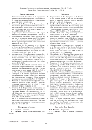 6. Марющенко А. С. Роль фондового рынка в обеспечении экономической безопасности России // Вектор экономики. 2023. № 3. URL: http://www.vectoreconomy.ru/images/publications/2023/3/worldeconomy/MaryushchenkoAS.pdf (дата обращения: 27.05.2023).
