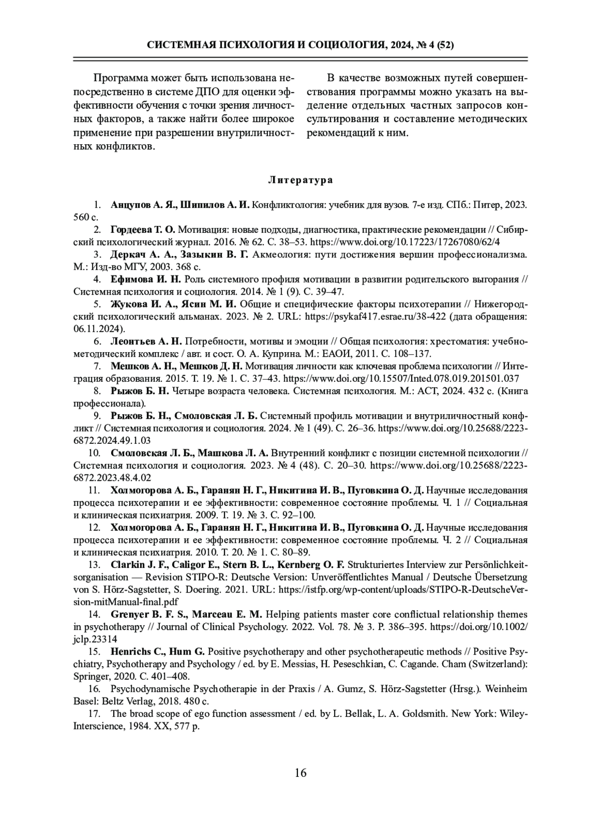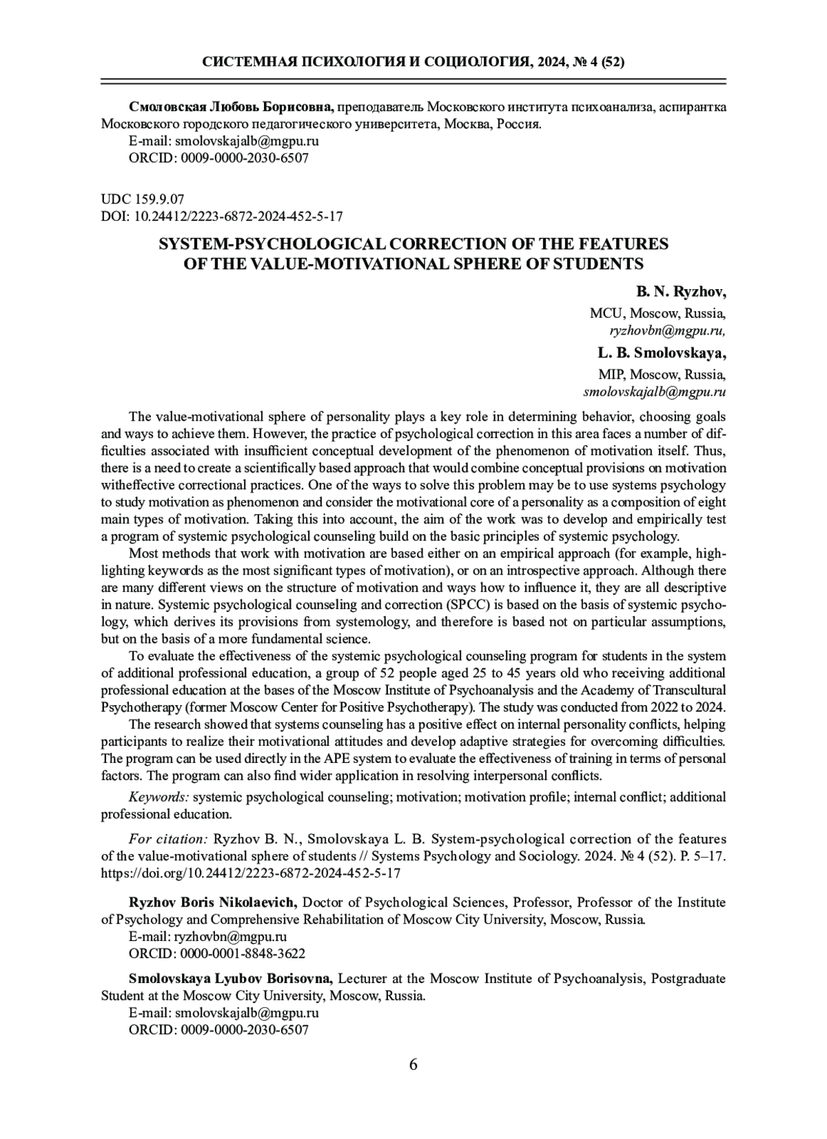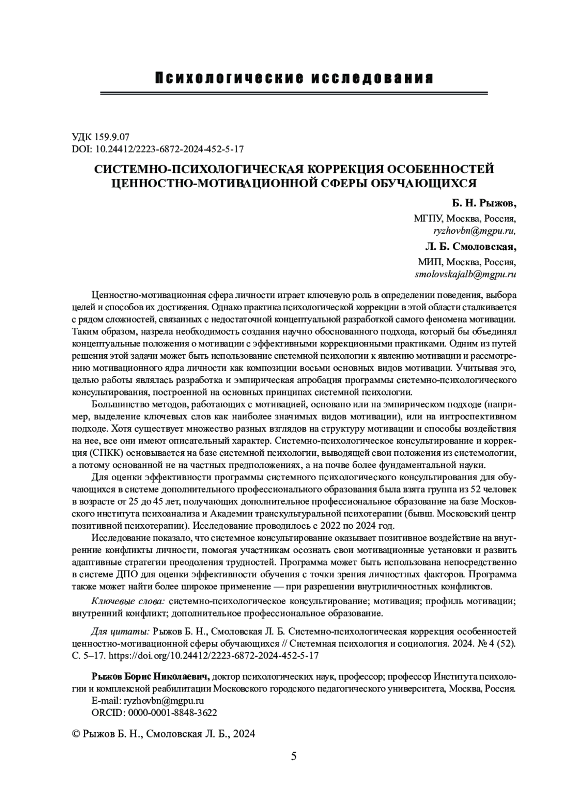 Журнал: СИСТЕМНАЯ ПСИХОЛОГИЯ И СОЦИОЛОГИЯ