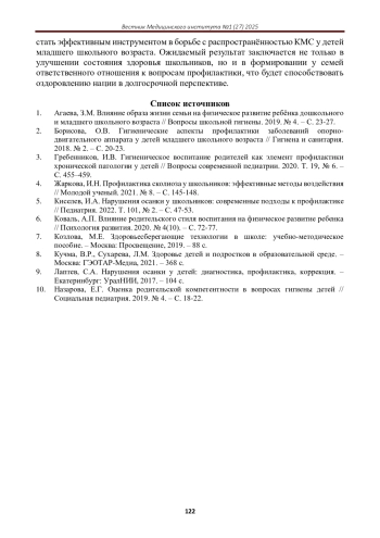 1. Агаева, З.М. Влияние образа жизни семьи на физическое развитие ребёнка дошкольного и младшего школьного возраста // Вопросы школьной гигиены. 2019. № 4. - С. 23-27.