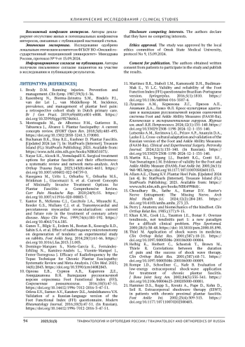 5. Nayar S.K., Alcock H., Vemulapalli K. Surgical treatment options for plantar fasciitis and their effectiveness: a systematic review and network meta-analysis. Arch Orthop Trauma Surg. 2023;143(8):4641-4651. DOI: 10.1007/s00402-022-04739-0