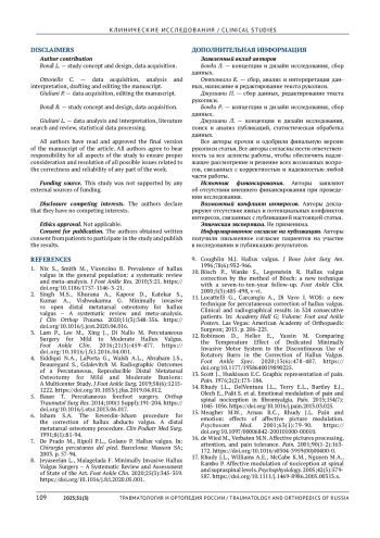 4. Сиддики Н.А., ЛаПорта Дж., Уолш А.Л., Абрахам Дж.С., Борегард С., Гдалевич М. Рентгенологические результаты чрескожной воспроизводимой остеотомии дистального отдела плюсневой кости при вальгусной деформации стопы легкой и средней степени тяжести: многоцентровое исследование. J Foot Ankle Surg. 2019;58(6):1215-1222. DOI: 10.1053/j.jfas.2019.04.012
