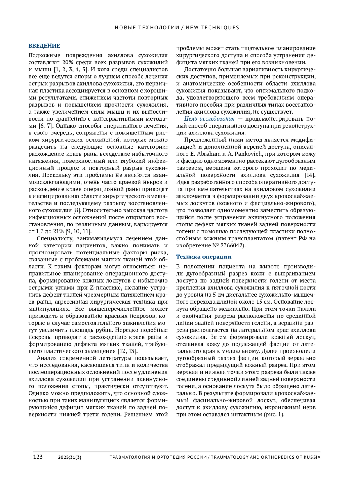 Статья: Способ оперативного доступа при вмешательствах на ахилловом сухожилии (2025)