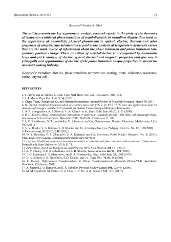 2. Morin F. J. // Phys. Rev. Lett. 1959. Vol. 3. P. 34. 3. Zheng Yang, Changhyun Ko, Shriram Ramanathan // Annual Review of Materials Research. 2011. March 30.