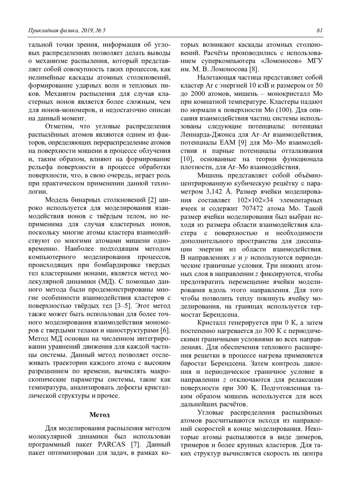 A. V. Nazarov and A. D. Zavilgelskiy Molecular dynamics simulation of Mo sputtering by the Ar gas cluster ion beam 60