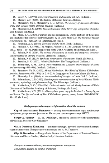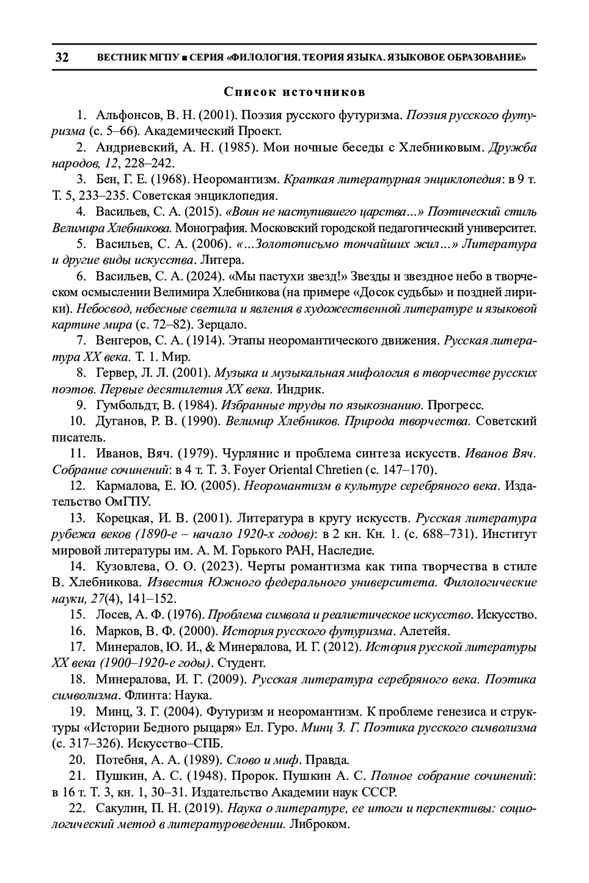 4. Васильев, С. А. (2015). “Воин не наступившего царства.”. Поэтический стиль Велимира Хлебникова. Монография. Московский городской педагогический университет.