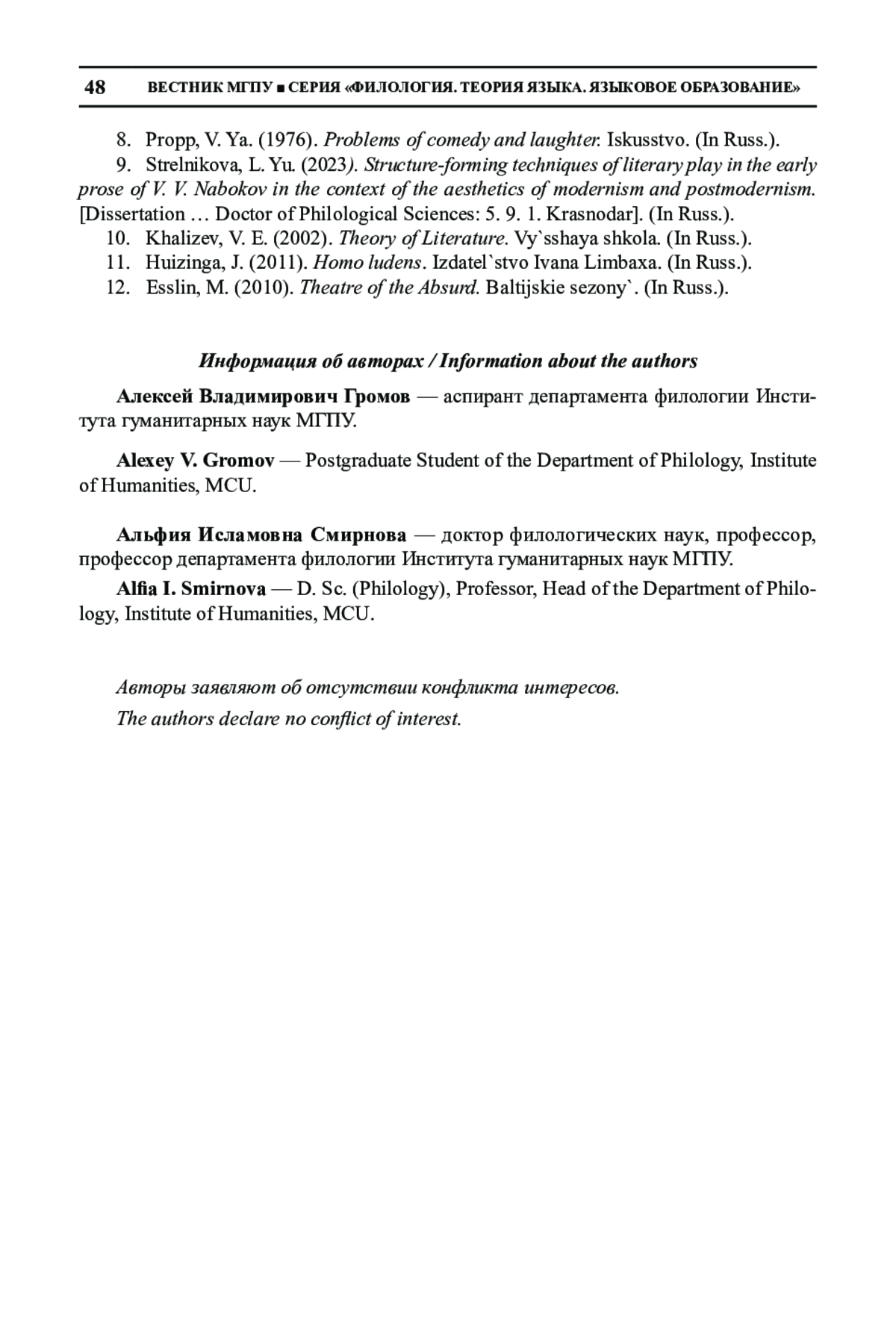9. Стрельникова, Л. Ю. (2023). Структурообразующие приемы литературной игры в ранней прозе В. В. Набокова в контексте эстетики модернизма и постмодернизма [Дис.. д-ра филол. наук: 5. 9. 1. Краснодар].