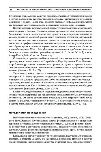 Ключевые фразы: художественный медицинский дискурс, черный юмор, медикализация, маскирующая функция, метафоризация, персонификация, семантическое преобразование