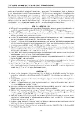 1. Лебедев Е. Л. Феномен энергетической дипломатии с позиции ведущих школ теории международных отношений. Инновации. Наука. Образование. 2021;(42):1035-1041. URL: https://www.elibrary.ru/yjwsvt