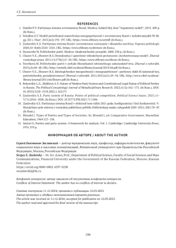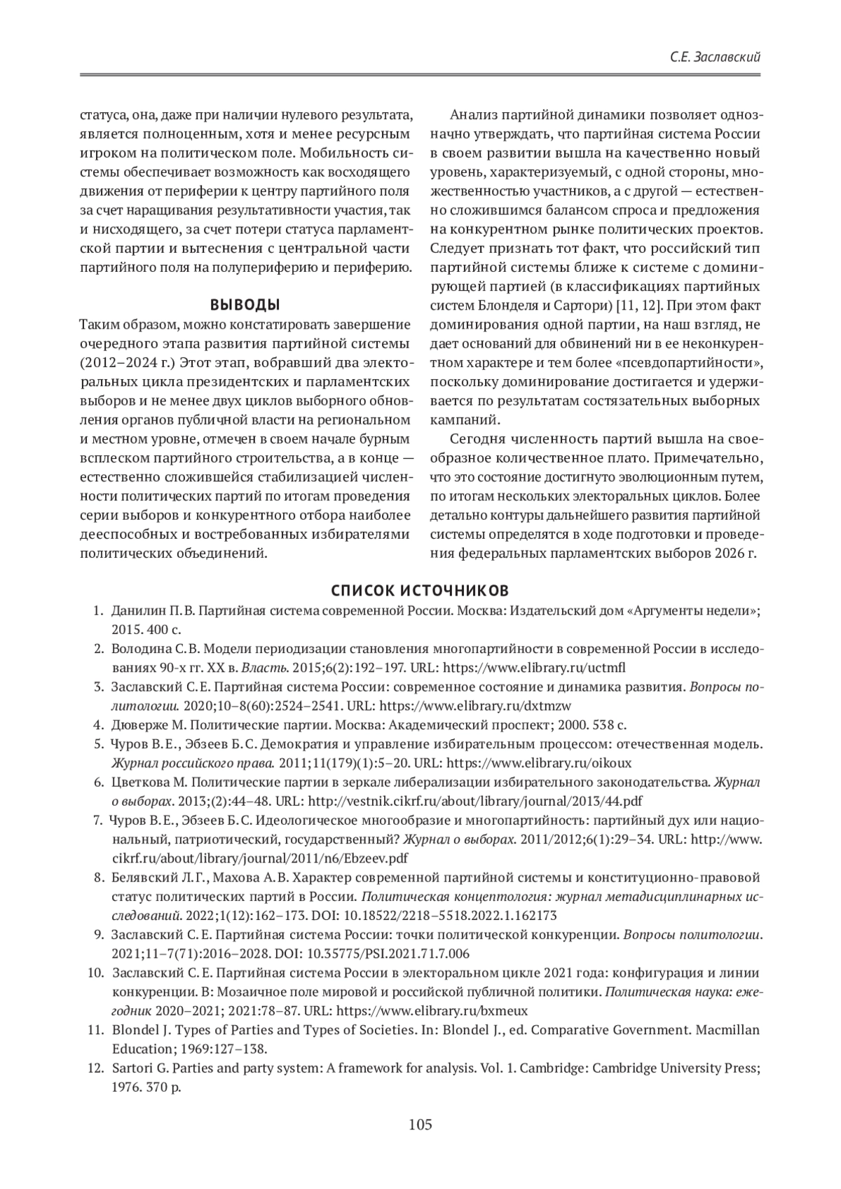3. Заславский С. Е. Партийная система России: современное состояние и динамика развития. Вопросы политологии. 2020;10-8(60):2524-2541. URL: https://www.elibrary.ru/dxtmzw