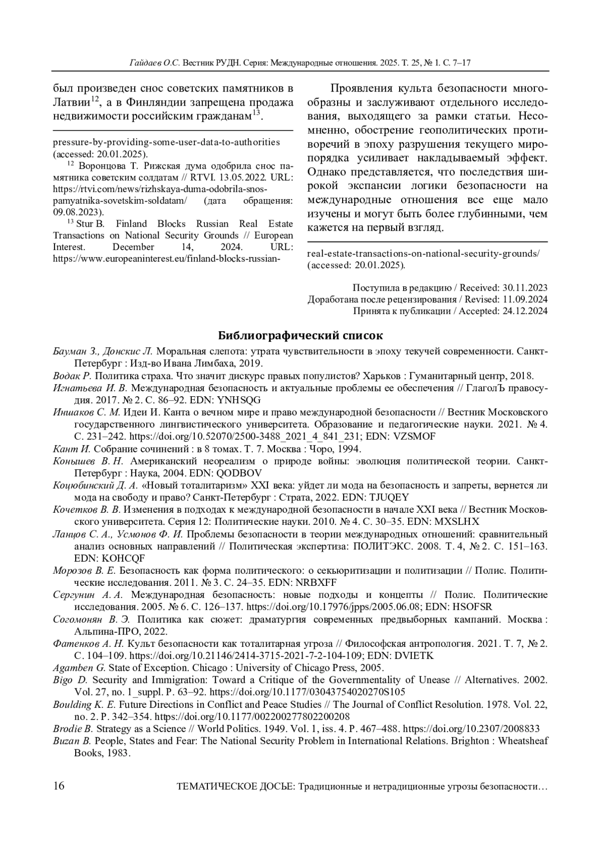 13. Фатенков А. Н. Культ безопасности как тоталитарная угроза // Философская антропология. 2021. Т. 7, № 2. С. 104-109. ;. DOI: 10.21146/2414-3715-2021-7-2-104-109 EDN: DVIETK