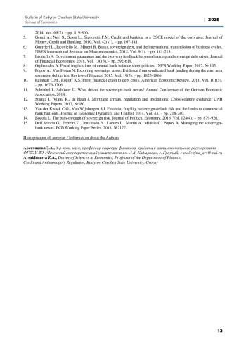 6. Guerrieri L., Iacoviello M., Minetti R. Banks, sovereign debt, and the international transmission of business cycles. NBER International Seminar on Macroeconomics, 2012, Vol. 9(1), - pp. 181-213.