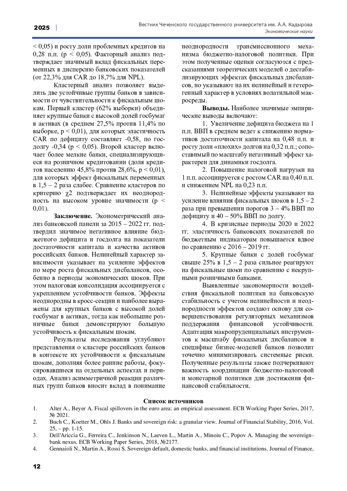 1. Alter A., Beyer A. Fiscal spillovers in the euro area: an empirical assessment. ECB Working Paper Series, 2017, № 2021.