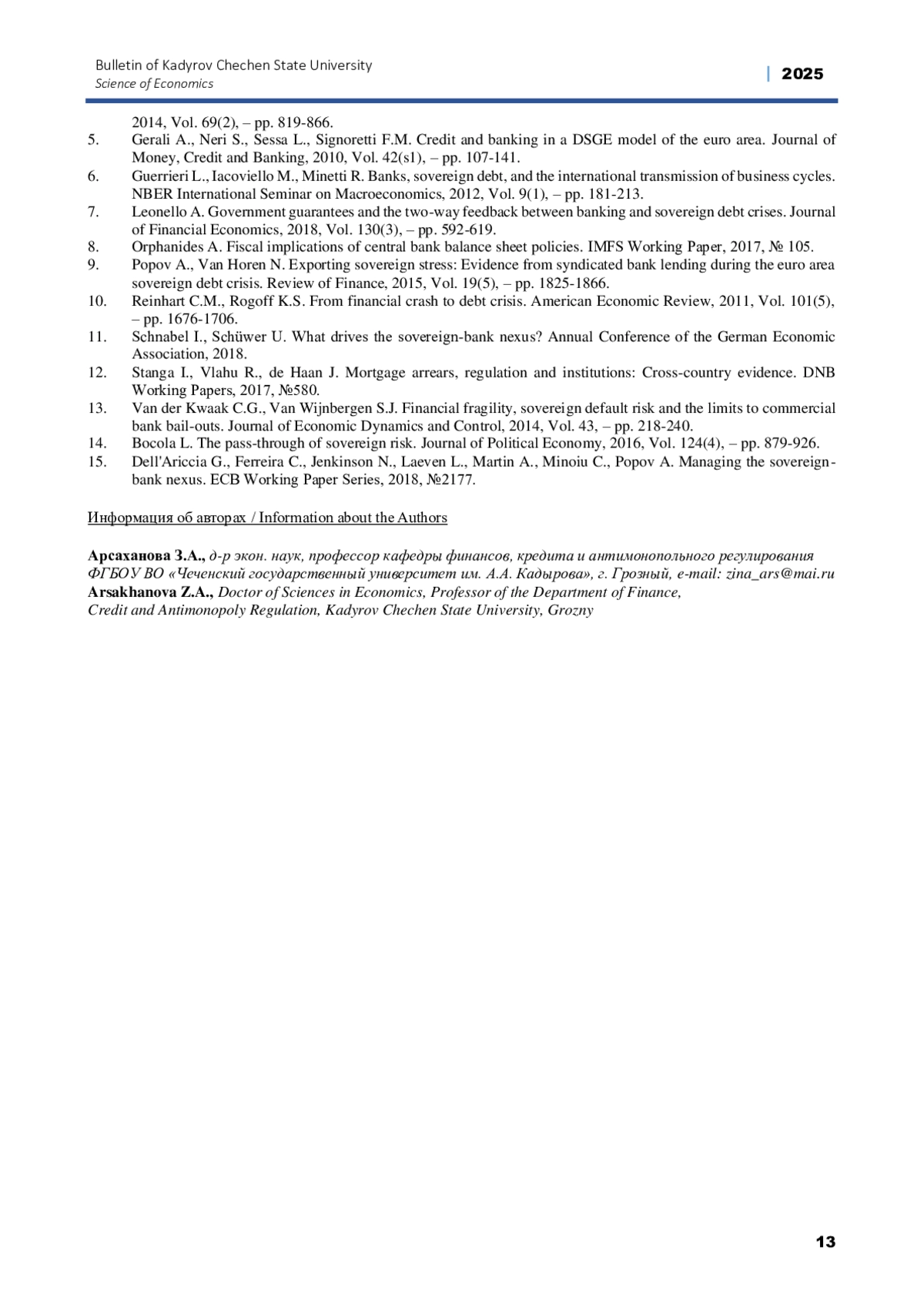 14. Bocola L. The pass-through of sovereign risk. Journal of Political Economy, 2016, Vol. 124(4), - pp. 879-926.