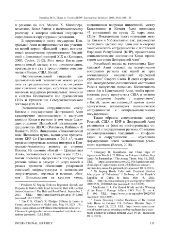 14. Reeves J. China’s Silk Road Economic Belt Initiative: Network and Influence Formation in Central Asia // Journal of Contemporary China. 2018. Vol. 27, iss. 112. P. 502-518. DOI: 10.1080/10670564.2018.1433480