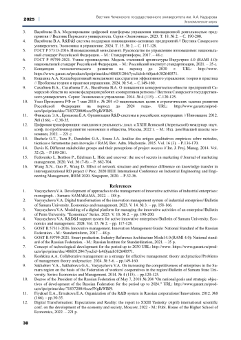 3. Васяйчева В.А. Моделирование цифровой платформы управления инновационной деятельностью предприятия // Вестник Пермского университета. Серия “Экономика”. 2023. Т. 18. № 2. - С. 190-200. EDN: KLVFKX