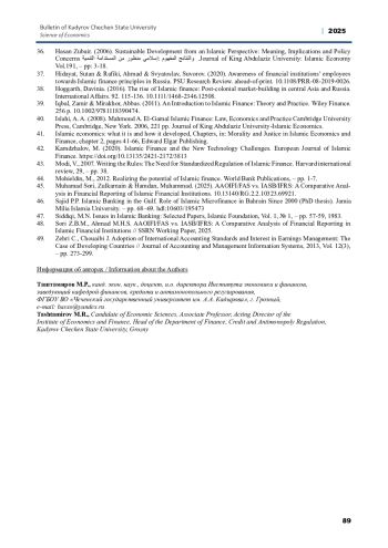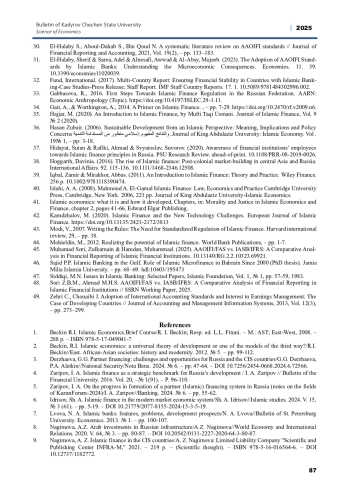 30. El-Halaby S., Aboul-Dahab S., Bin Qoud N. A systematic literature review on AAOIFI standards // Journal of Financial Reporting and Accounting, 2021, Vol. 19(2), - pp. 133-183. EDN: YPZTIM