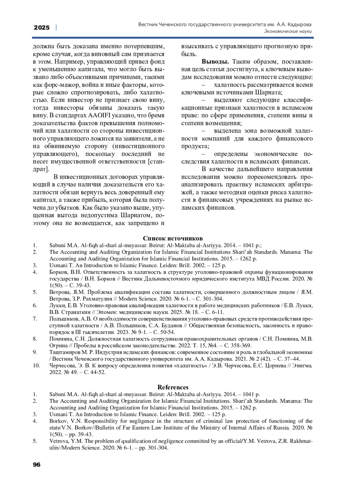 9. Таштамиров М. Р. Индустрия исламских финансов: современное состояние и роль в глобальной экономике / Вестник Чеченского государственного университета им. А.А. Кадырова. 2021. № 2 (42). - С. 37-44. EDN: ILBZYV