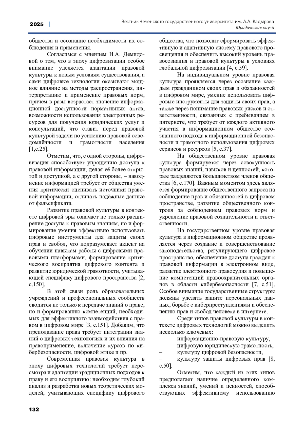 7. Цветикова Т. В. Положение правовой культуры в условиях цифровизации общества // Закон и власть. 2022. №2. - С. 49-54. EDN: ZGZWVV
