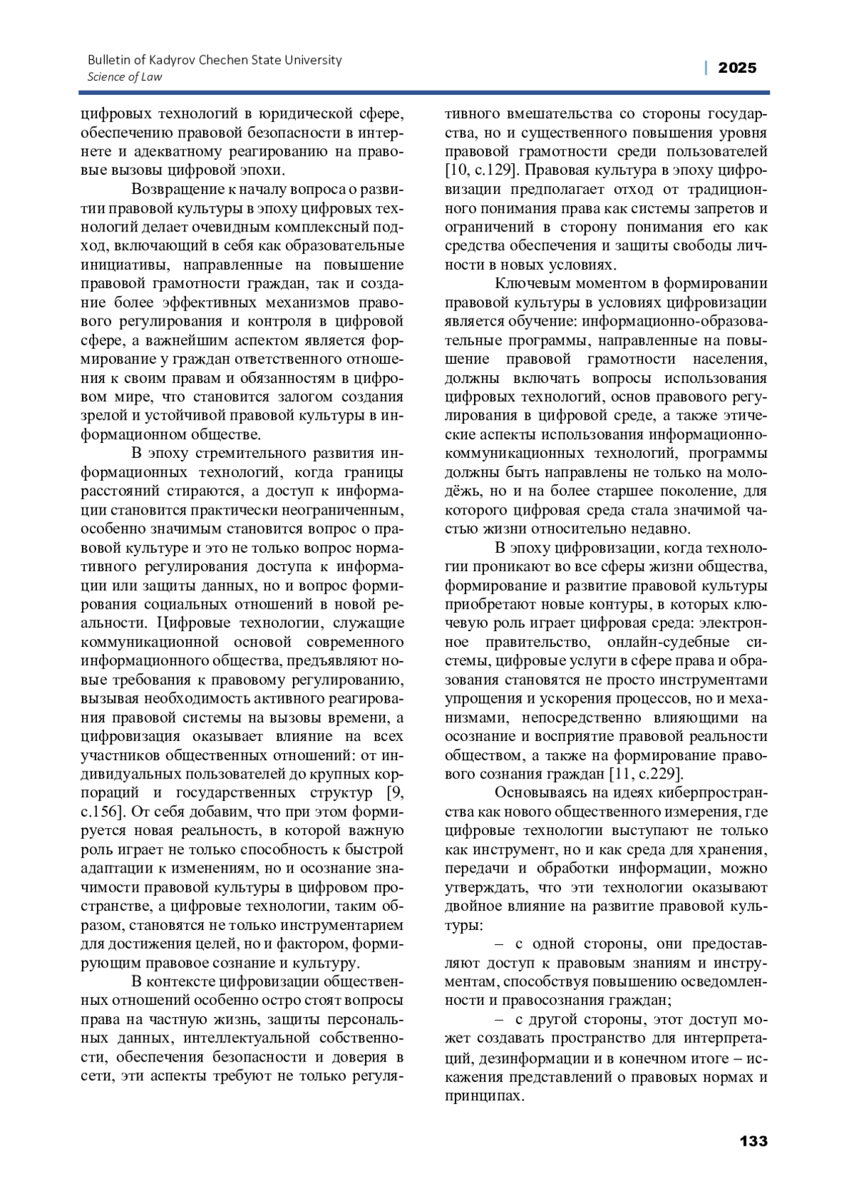 13. Сироткин А.А. К вопросу о влиянии цифровизации на состояние правовой культуры российского общества // Евразийская адвокатура. 2023. №2 (61). - С. 119-124. EDN: QYULTP