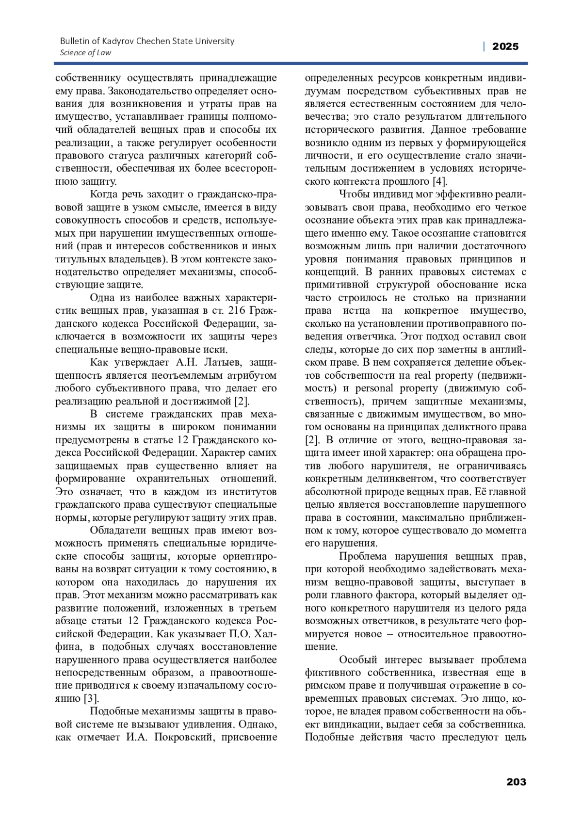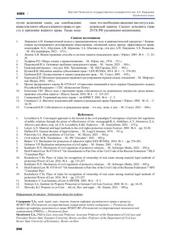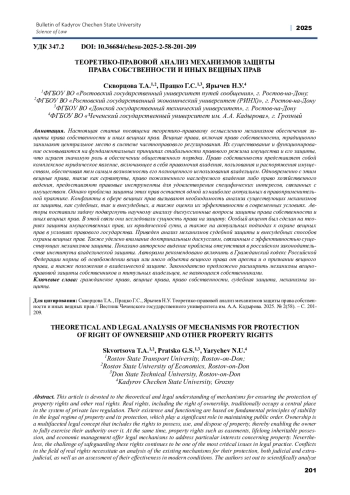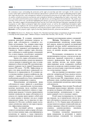 Статья: ТЕОРЕТИКО-ПРАВОВОЙ АНАЛИЗ МЕХАНИЗМОВ ЗАЩИТЫ ПРАВА СОБСТВЕННОСТИ И ИНЫХ ВЕЩНЫХ ПРАВ (2025)