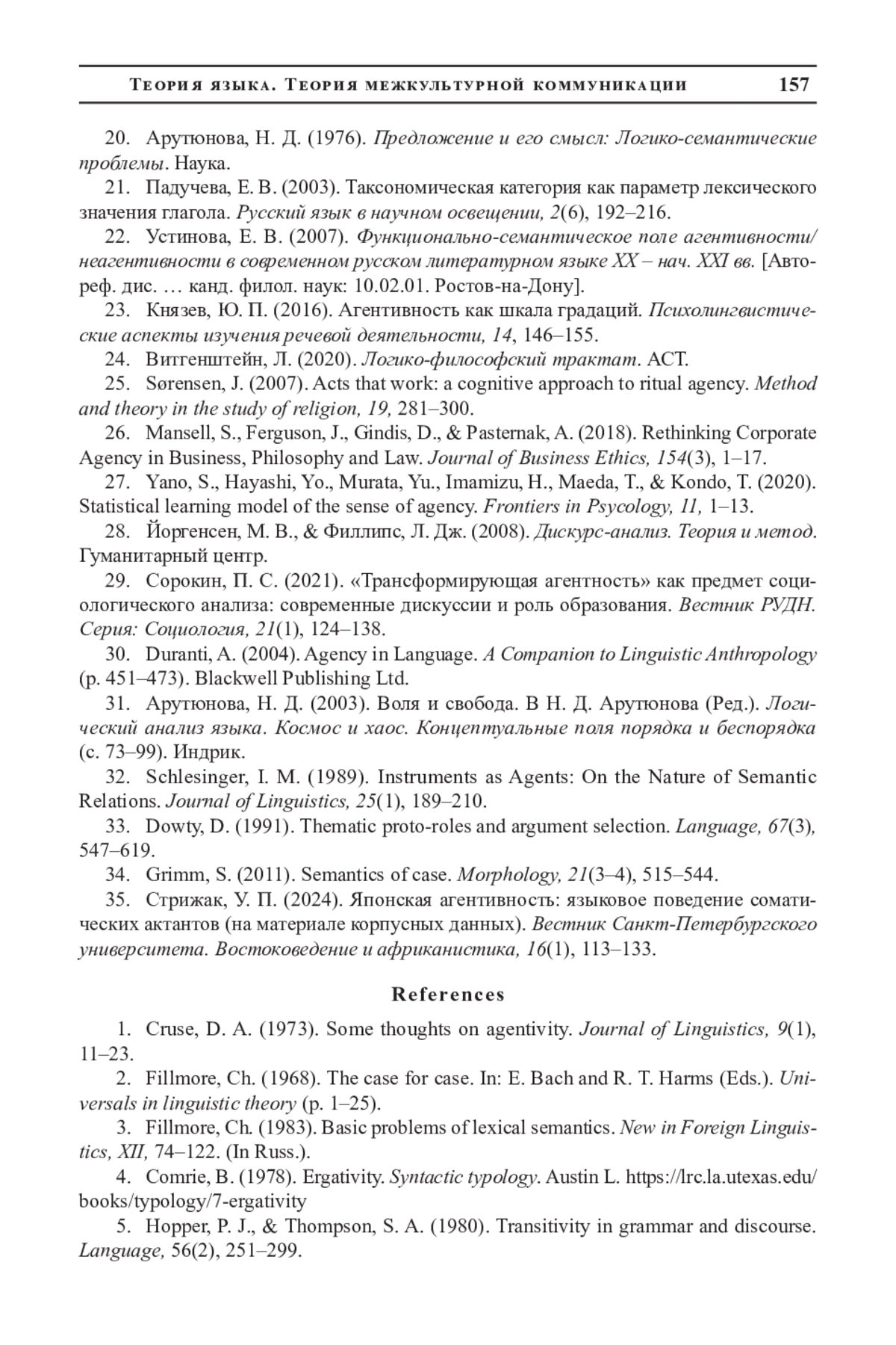 Статья: АГЕНТИВНОСТЬ КАК СЕМАНТИЧЕСКАЯ КАТЕГОРИЯ: ОНТОЛОГИЧЕСКАЯ СУЩНОСТЬ ЯЗЫКОВОЙ СТРУКТУРЫ (2025)