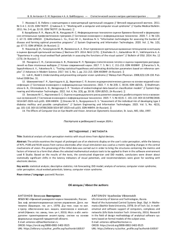 1. Portello J. K., Rosenfield M., Bababekova Y., Estrada J. M., Leon A. Computerrelated visual symptoms in office workers// Ophthalmic and Physiological Optics. 32. 375-382 (2012). DOI: 10.1111/j.1475-1313.2012.00925.x