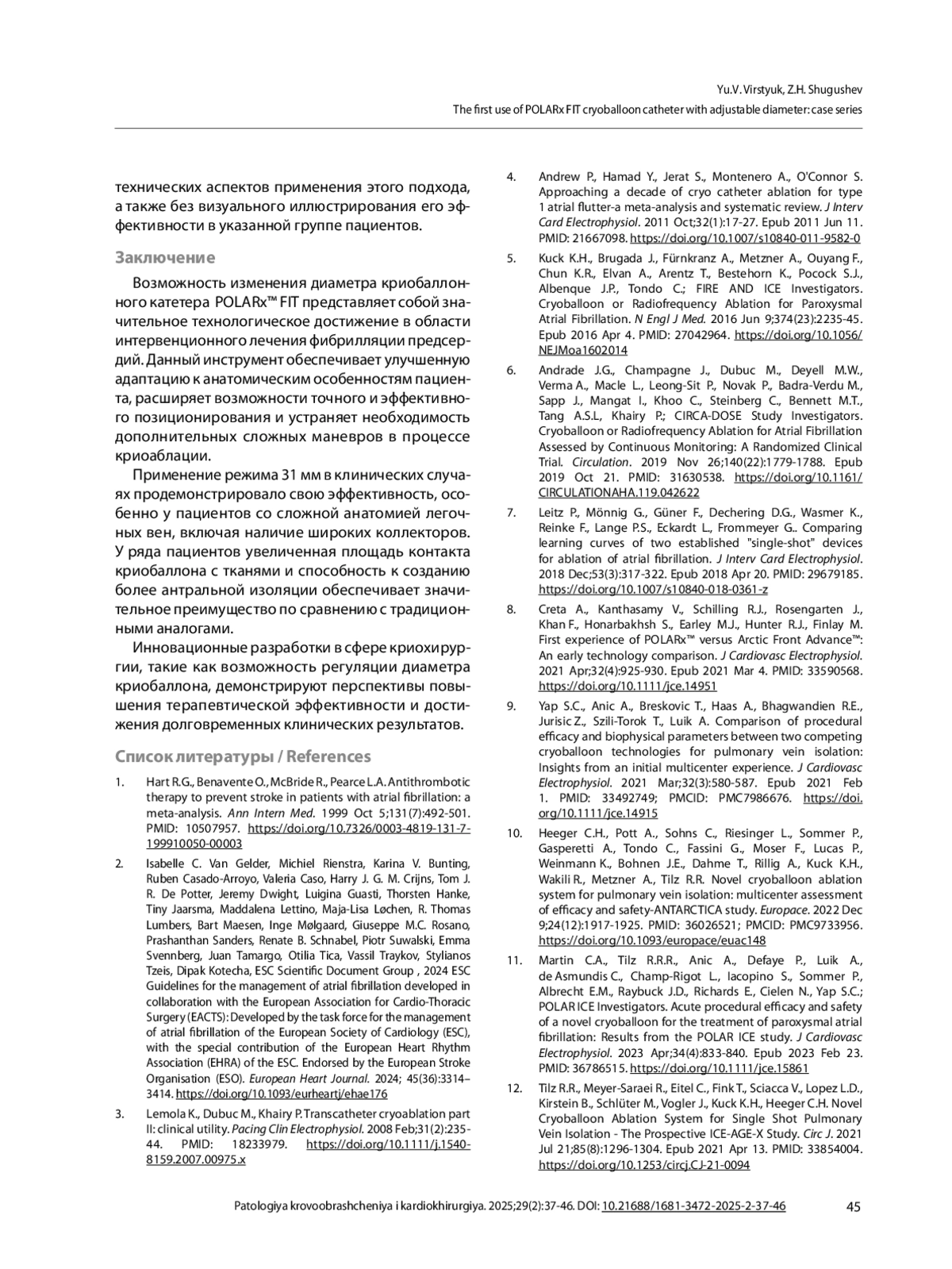 Заключение. Криобаллонный катетер с регулируемым диаметром POLARx FIT представляется многообещающим нововведением в лечении аритмий. Его способность адаптироваться к различным анатомическим особенностям пациента может улучшить долгосрочные терапевтические результаты.
