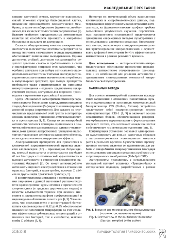 Современные протоколы лечения воспалительных заболеваний пародонта, такие как Guided Biofilm Therapy (GBT), предусматривают комплексную профессиональную гигиену полости рта как обязательный первоначальный этап. Данная процедура состоит из двух последовательных фаз: сначала методом воздушно-абразивной обработки (AIR-flow и PERIO-flow) удаляется мягкий зубной налет и поверхностные пигментации, после чего производится целенаправленное удаление минерализованных зубных отложений и поддесневого камня с помощью ультразвукового скейлера. Такой подход обеспечивает полную элиминацию биопленки и создает условия для успешного проведения последующей противовоспалительной терапии [1, 2]. В алгоритм лечебно-профилактических мероприятий, необходимых для предупреждения рецидивов заболевания, также входит применение антисептических препаратов местного действия, обладающих широким антимикробным спектром (далее – пародонтальные антисептики). Последние, как правило, используются в виде ополаскивателей и ирригантов [3, 4].