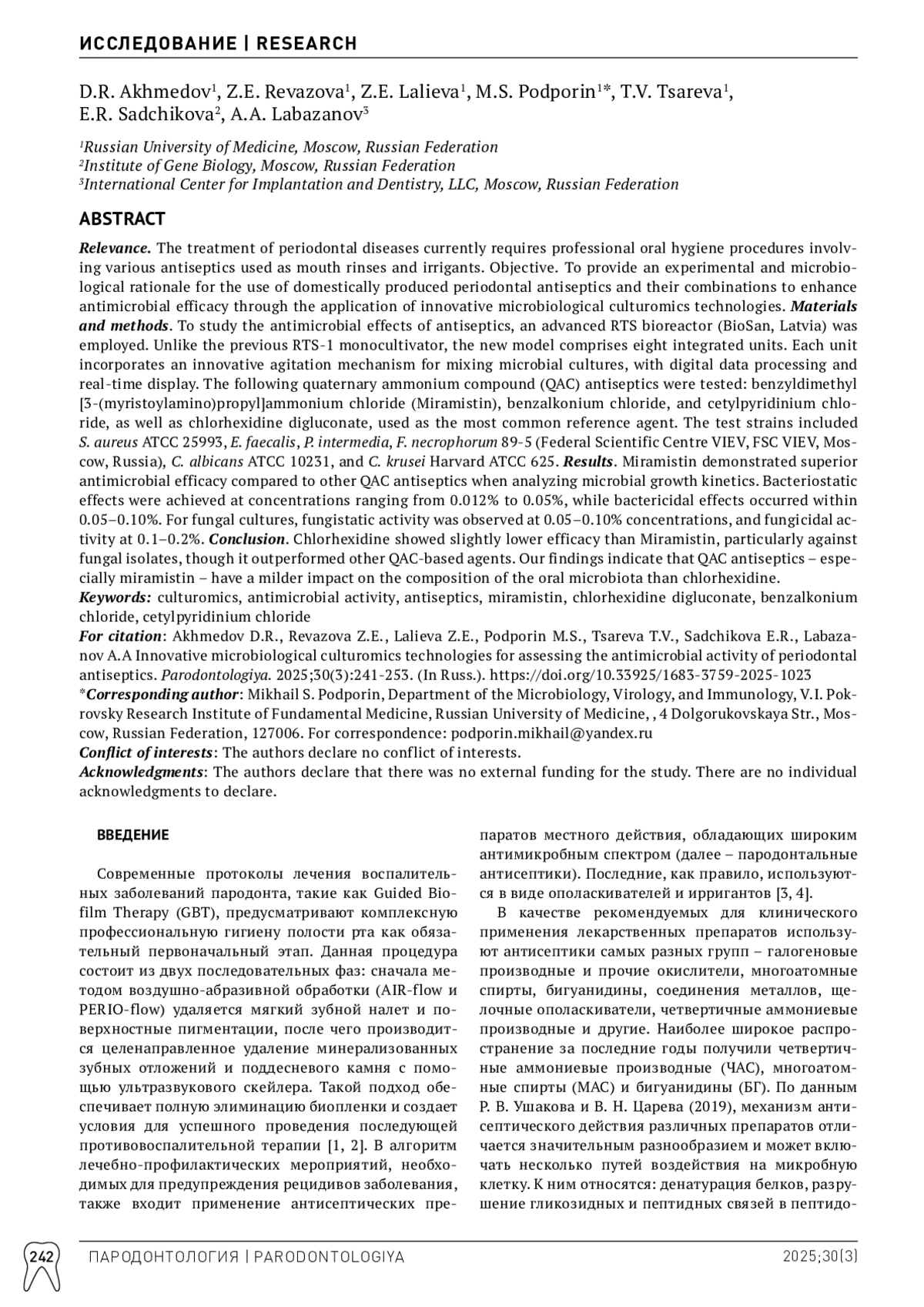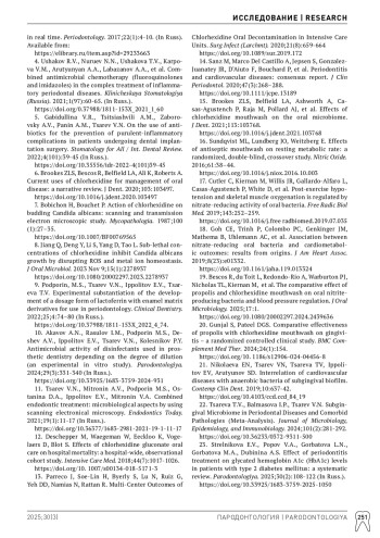 3. Царев ВН, Атрушкевич ВГ, Ипполитов ЕВ, Подпорин МС. Сравнительный анализ антимикробной активности пародонтальных антисептиков с использованием автоматизированной системы контроля роста микроорганизмов в режиме реального времени. Пародонтология. 2017;22(1):4-10. Режим доступа: item.asp?id=29233663.