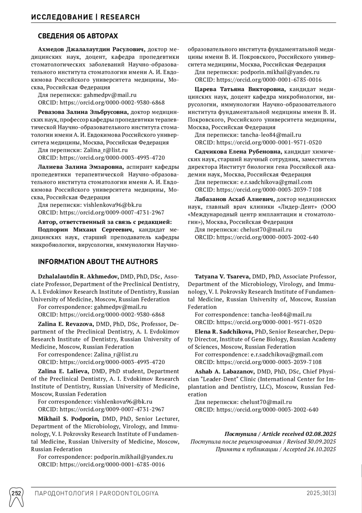 23. Стрельникова ЕВ, Попов ВА, Горбатова ЛН, Горбатова МА, Дубинина АС. Влияние лечения пародонтита на уровень гликированного гемоглобина A1c (HbA1c) при сопутствующем сахарном диабете 2 типа: систематический обзор. Пародонтология. 2025;30(2):108-122.