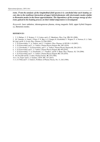 5. Дорофеенко В. Г., Красовицкий В. Б., Туриков В. А. // Физика плазмы. 2015. Т. 41. С. 286.